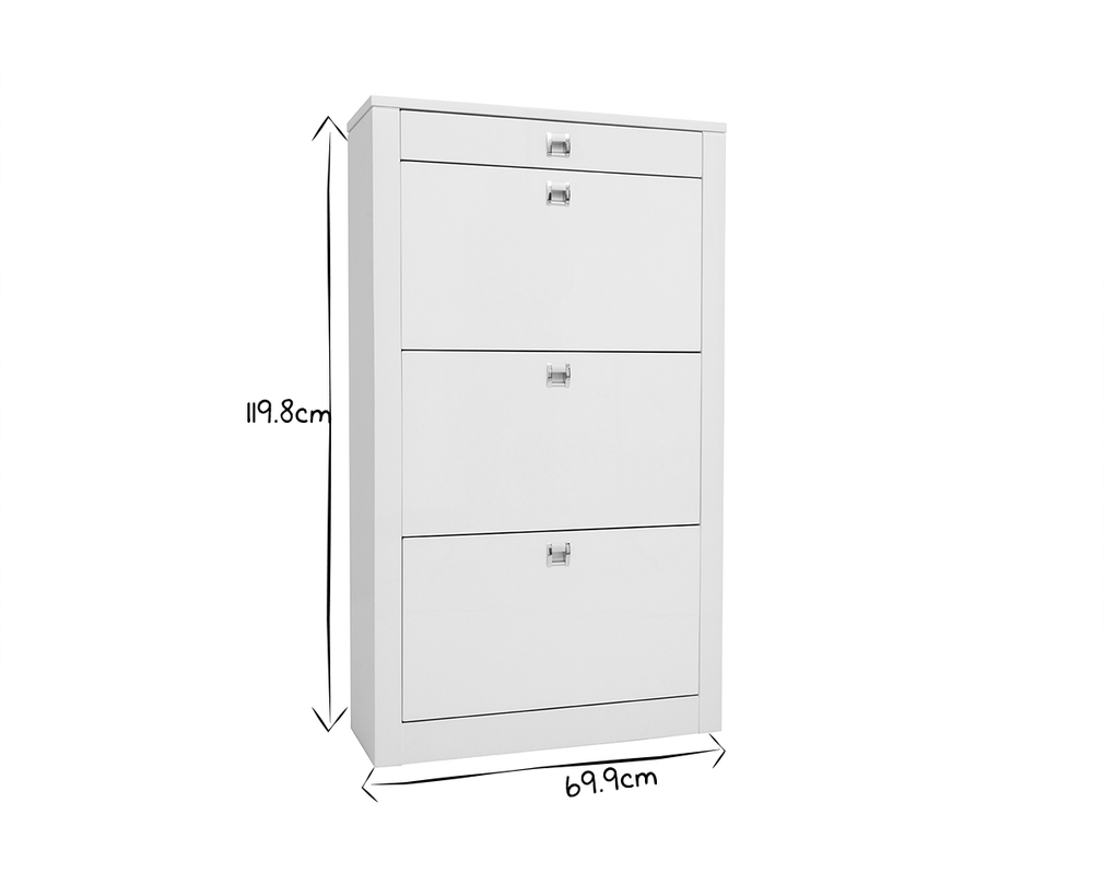 Meuble A Chaussure 4 Abattants 1 Tiroir Kalava Blanc Brillant