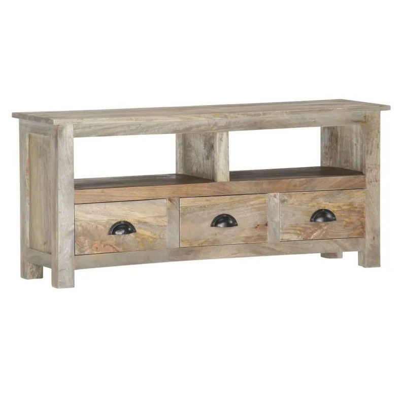 Meuble Tv 3 Tiroirs Manguier Fini Chene Gris Teash 110 Cm Lestendances Fr